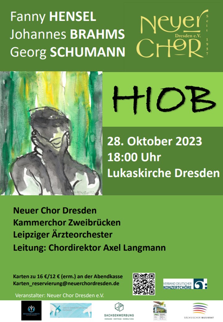 | 28. Oktober 2023 | 18:00 Uhr Lukaskirche Dresden | "HIOB" Musik von Johannes Brahm, Fanny Hensel, Robert Schumann in Kooperation mit dem Neuen Chor Dresden (Leitung: Axel Langmann) und dem Leipziger Ärzteorchester. |